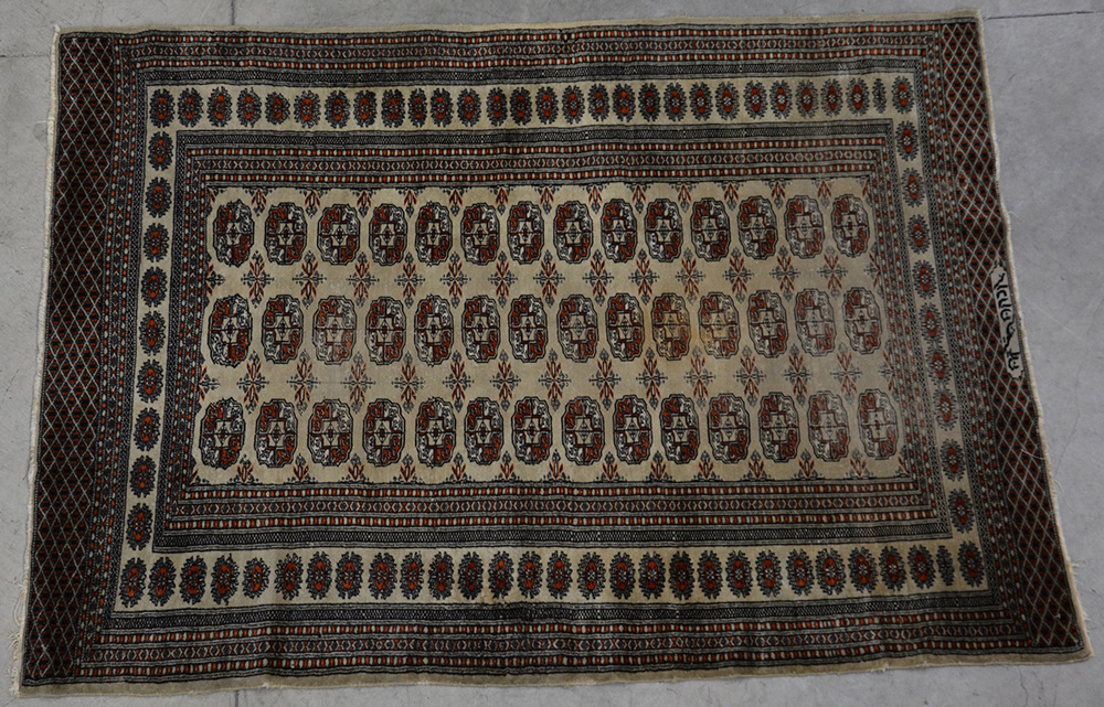 [Tappeti] Tappeto Bohukara, Pakistan, secolo XX. Decoro a Gul su fondo beige....