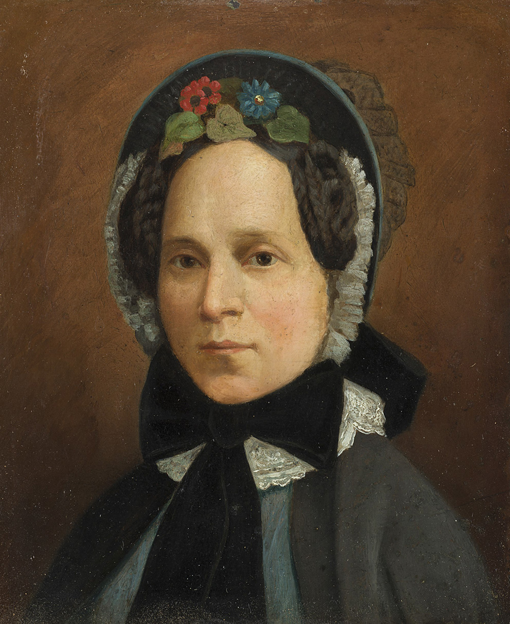 School of the late 19th century "Portrait of a Lady with a Floral Hat" oil on copper (cm 16.5x13) Framed (defects)