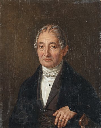 Scuola degli inizi del sec. XIX "Ritratto di gentiluomo" olio su tela (cm 34x26,5) In cornice (difetti e restauri)