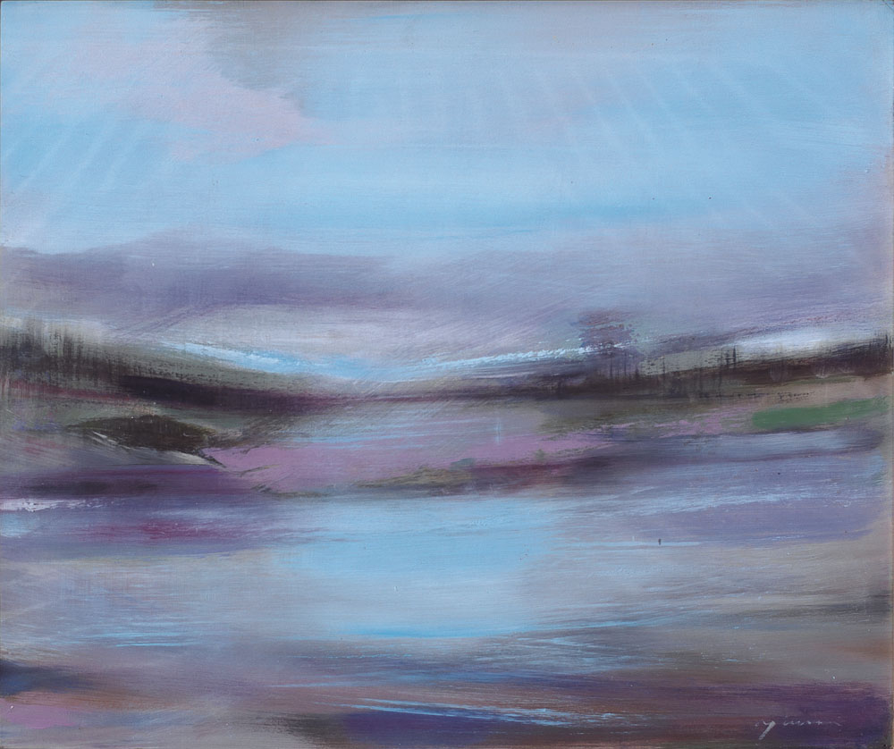 GIUSEPPE AJMONE Carpignano Sesia 17/02/1923 - 07/04/2005 - Lungo il fiume, 2003, olio su tavola cm. 38x46, firma in basso a destra, titolo e anno al retro.
