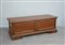 Cassapanca in noce con fronte e fianchi riquadrati, piedi a mensola. Sec. XVIII (cm 170x60x58)