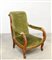 Poltrona con montanti scanalati, braccioli a fasce intagliate. Fine sec XIX...