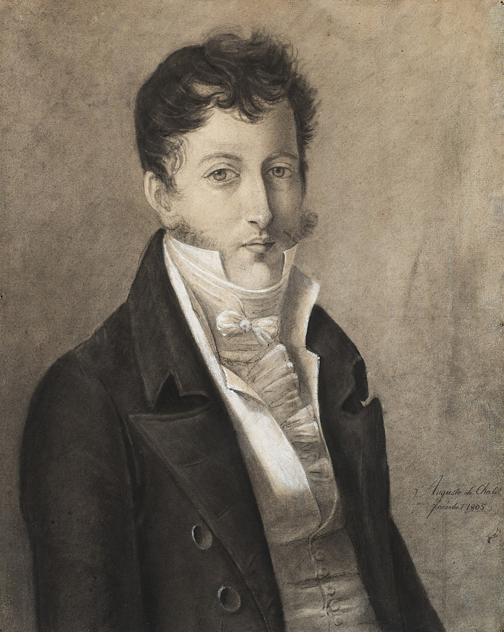 Auguste de Chalot (sec. XVIII/XIX) "Ritratto di gentiluomo 1805" carboncino e...