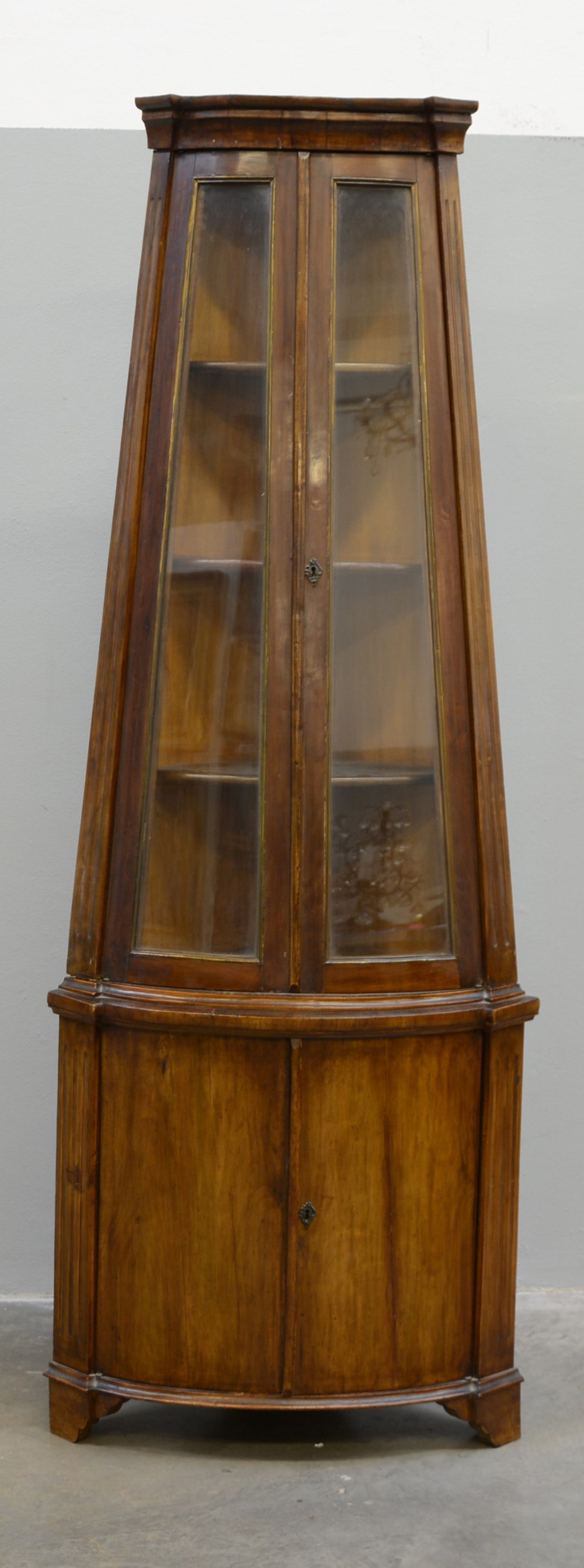 Angoliera a due corpi. Parte superiore a due ante a vetri, parte inferiore a...