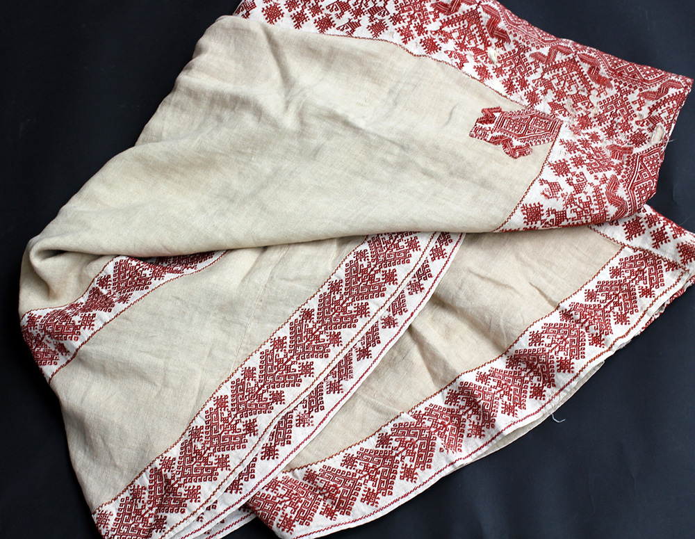 Ricamo in seta rossa su tessuto ecrù in lino, Mar Egeo, metà secolo XIX.