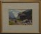 Firma indecifrata "Paesaggio montano con figura, baita e tronchi" olio su cartoncino pressato (cm 23x34), firmato in basso a sinistra. In cornice