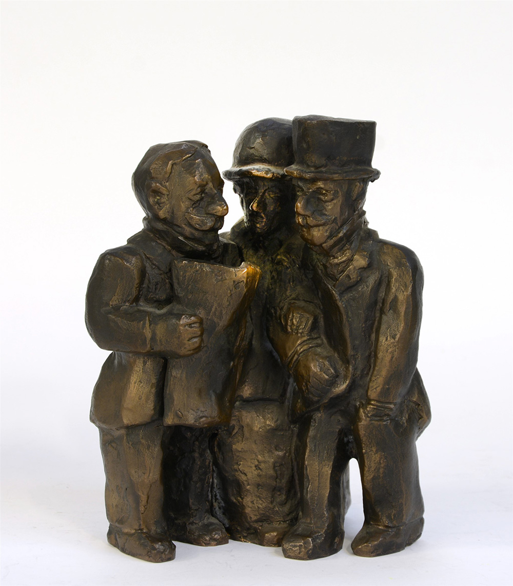 Personaggi, multiplo in bronzo (h cm 23), firmato e numerato 90/100 al retro. Opera accompagnata da certificato di autenticità rilasciato da Spirale Arte, Milano e firmato dall'artista.