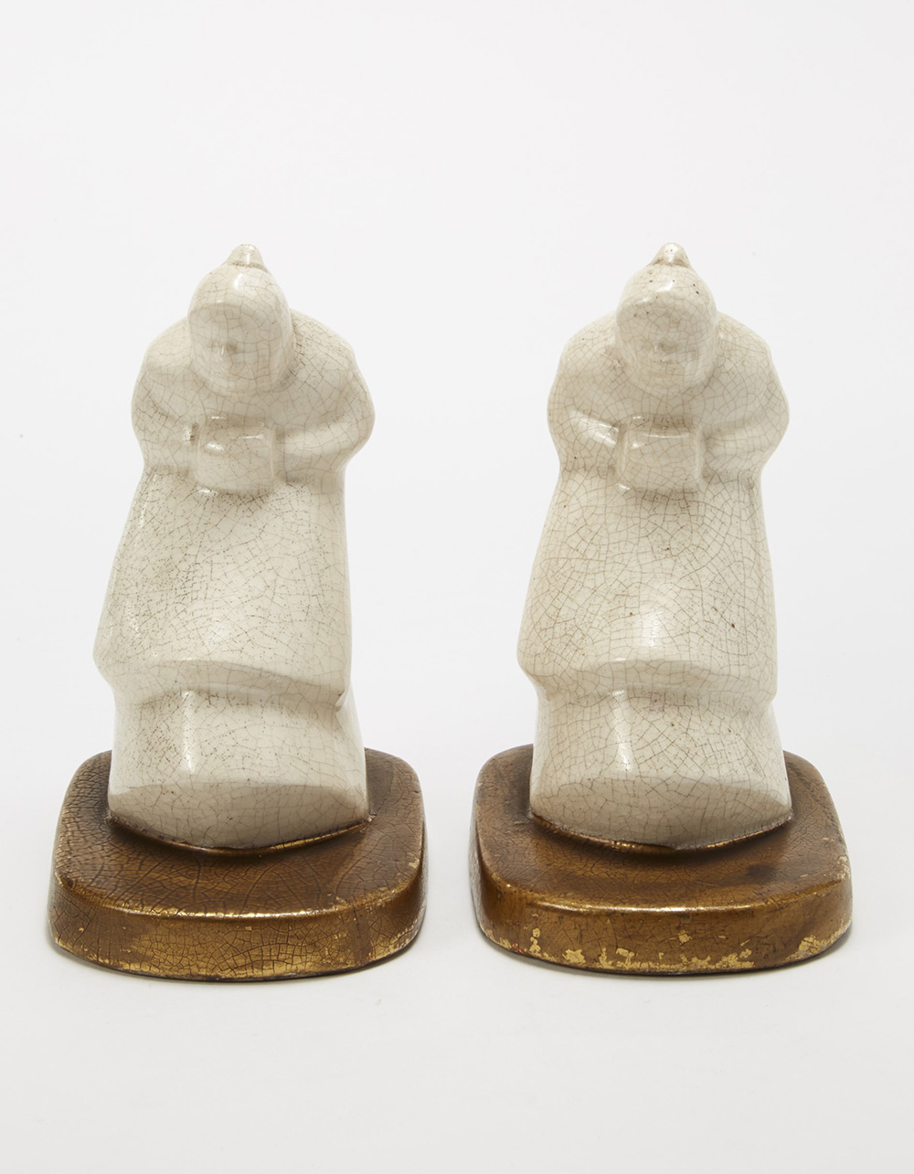 Firma indecifrata, "Figure" coppia di fermalibri in ceramica decorata a...