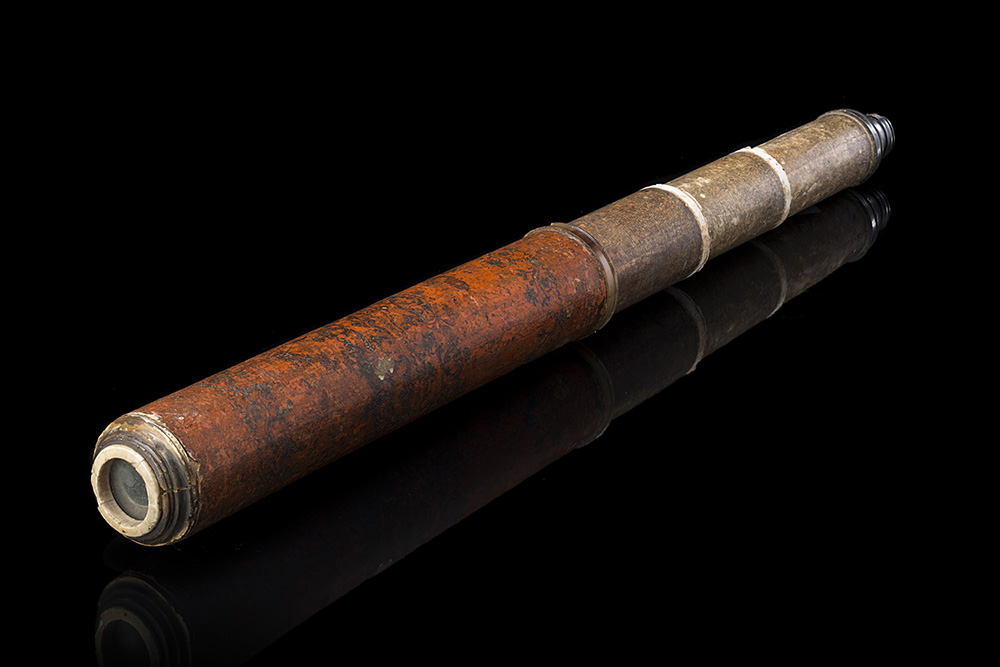 Leonardo Semitecolo, pressed cardboard telescope. Late 18th/early 19th century (defects and losses)