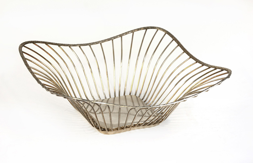 Cestino porta pane in argento di forma quadrata. Italia, metà sec. XX (l. max cm 23,5) (gr 370 ca.)
