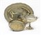 Lotto composto da un vassoio ovale, un'alzatina con bordo traforato e una ciotola in metallo e ottone