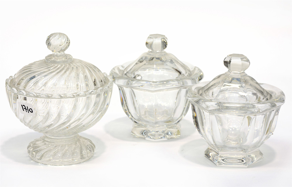 Manifattura di Baccarat, lotto di tre contenitori in cristallo con coperchi,...
