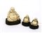 Gruppo di tre sculturine in avorio raffiguranti Budai su basi in legno (h max...