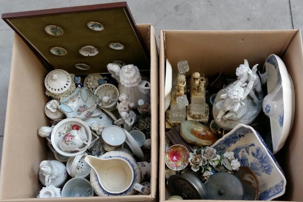 Lotto di due cartoni contenenti numerosi oggetti per la tavola ed altri usi principalmente in ceramica (difetti)