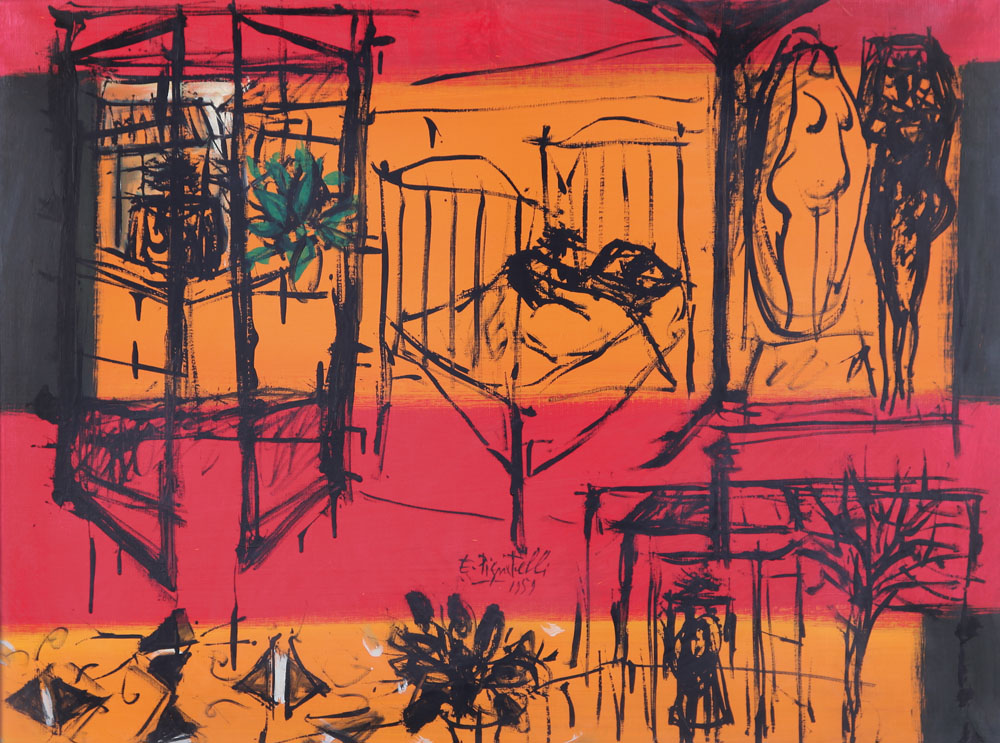 ERCOLE PIGNATELLI Lecce 28/04/1935 Senza titolo, 1959 olio su tela cm. 60x80, firma e anno in basso al centro e al retro, già asta Finarte (MI), maggio 2008.