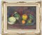 "Natura morta con frutta e fiasca" olio su tela (40x50) firmato in basso a destra, in cornice (difetti)