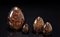 Gruppo di quattro uova in vetro a macchie brune. Sec. XX (misure diverse)
