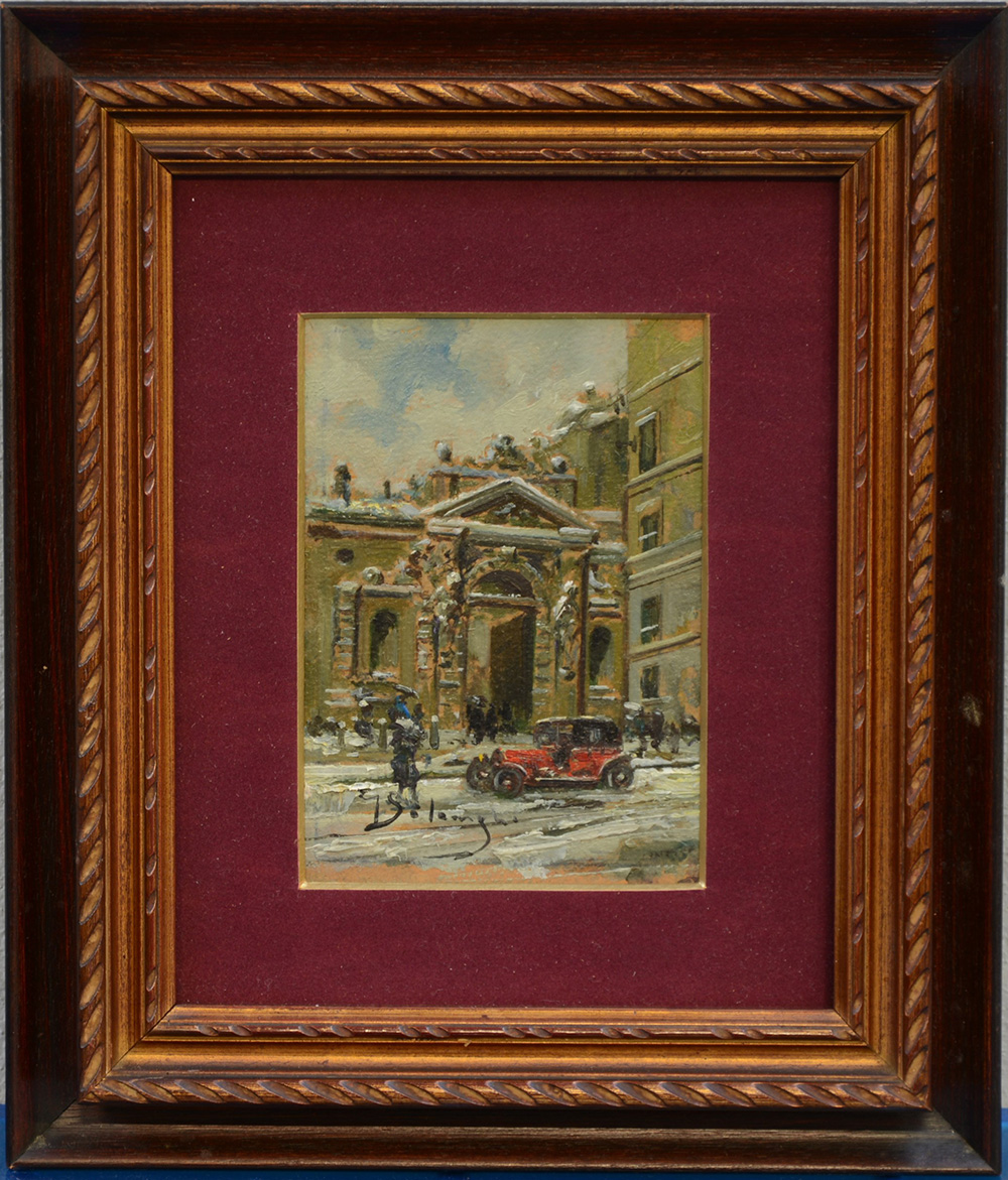 Ignoto "Scorcio di Milano" (cm 17x12). Firmato Solenghi in basso al centro. In cornice