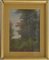 Firma indecifrata "Paesaggio lacustre con alberi" olio su tela applicata a cartone (cm 36x25) Firmato in basso a destra. In cornice