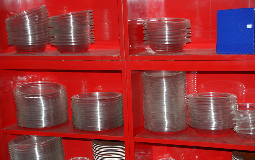 Parte di servizio di piatti in vetro trasparente composto da 215 pezzi (difetti)
