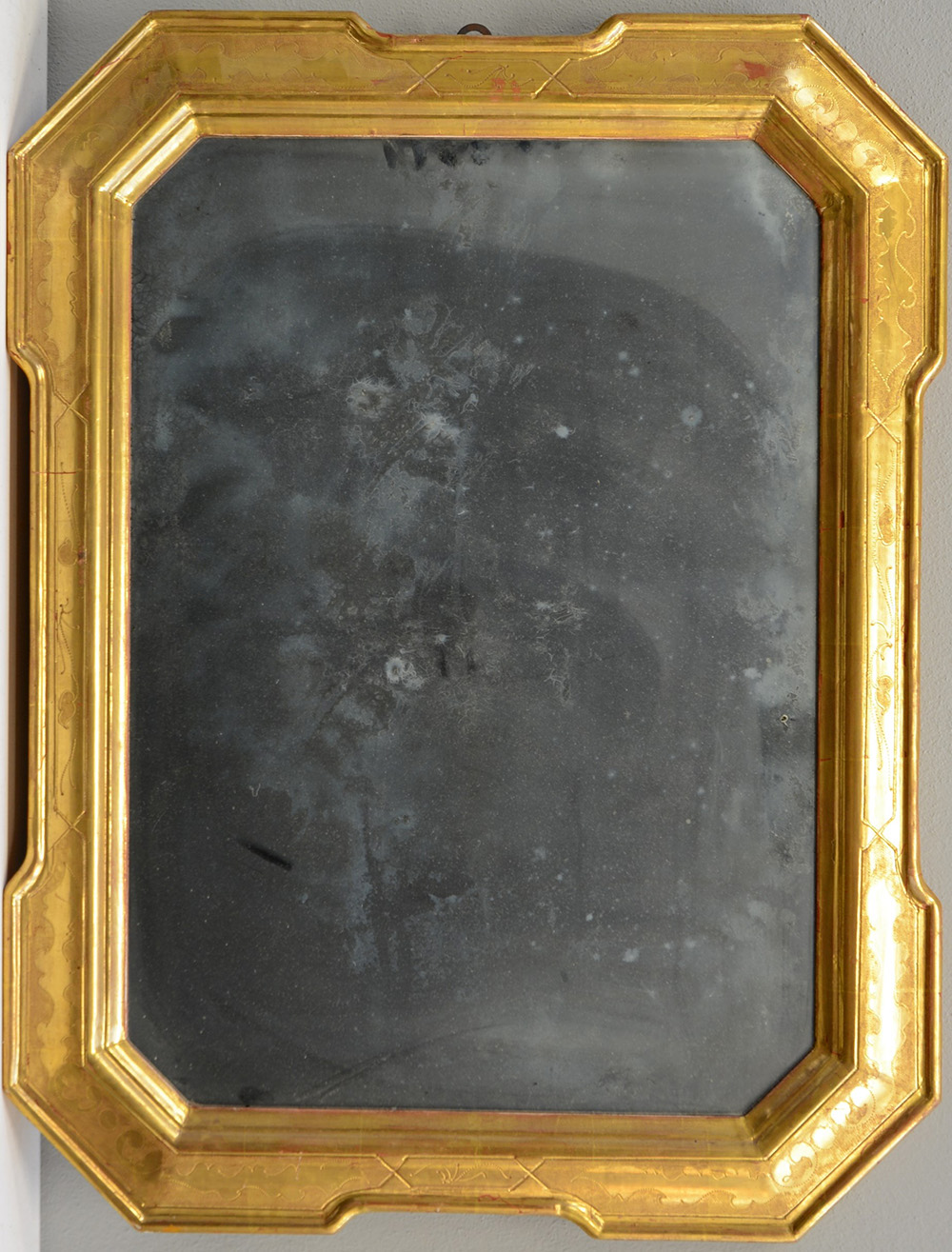 Lotto 1822 | Specchiera a vassoio in legno dorato e bulinato (cm 83x63) (difetti)