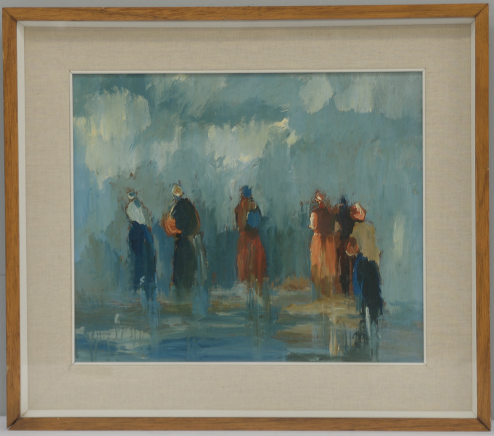 Firma indecifrata "Figure" olio su masonite (cm 37x45) Traccia di firma in basso a destra. In cornice