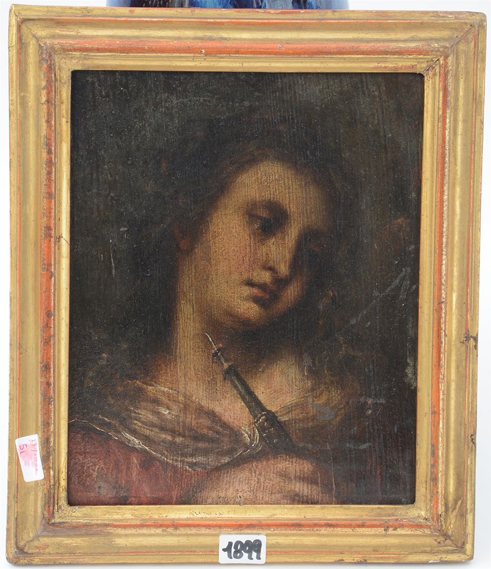 Scuola veneta del secolo XVII "Ritratto femminile"olio su tavoletta (cm 22x18)in cornice (difetti)
