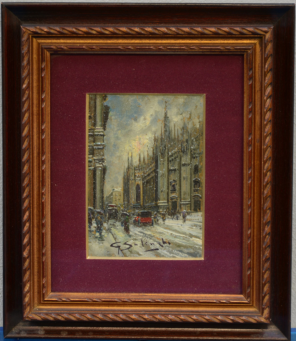 Ignoto "Scorcio del Duomo di Milano" (cm 17x12) Firamto Solenghi in basso al centro. In cornice