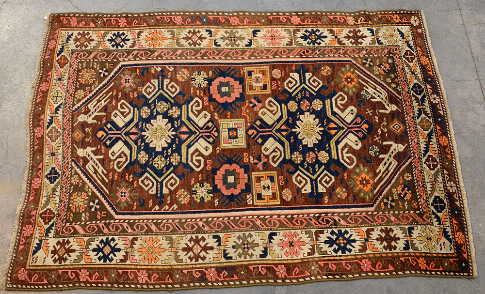 [Tappeti] Tappeto Seikour, Caucaso, inizio secolo XX. Disegno con due...