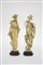 Coppia di sculture di materiale plastico raffigurante personaggi orientali (h cm 45) (difetti)