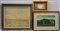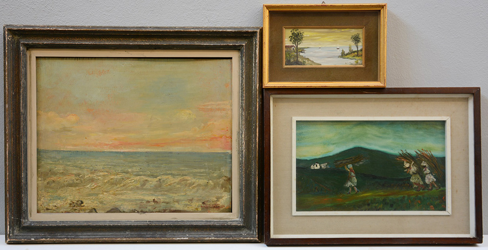 Lotto di tre dipinti ad olio raffiguranti paesaggi, misure differenti, in cornici (difetti)