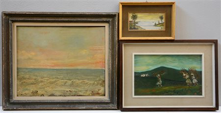 Lotto di tre dipinti ad olio raffiguranti paesaggi, misure differenti, in...