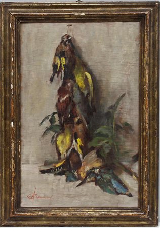Ambrogio Cremonesi (1852 - 1936)"Natura morta con selvaggina" olio su...