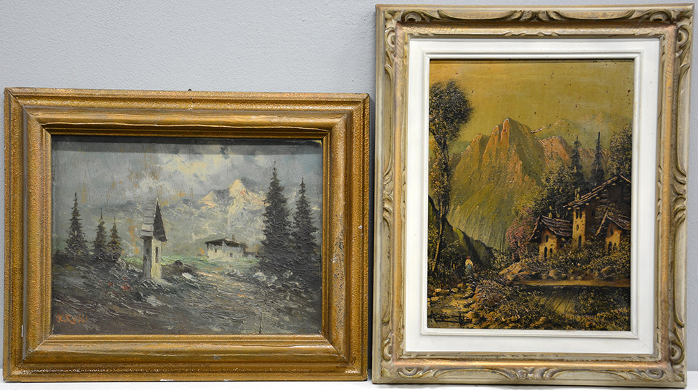 Lotto composto da due dipinti raffiguranti paesaggi, di autori e misure differenti