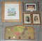 Lotto composto da un piccolo attaccapanni in legno e quattro riproduzioni diverse in cornici (difetti)