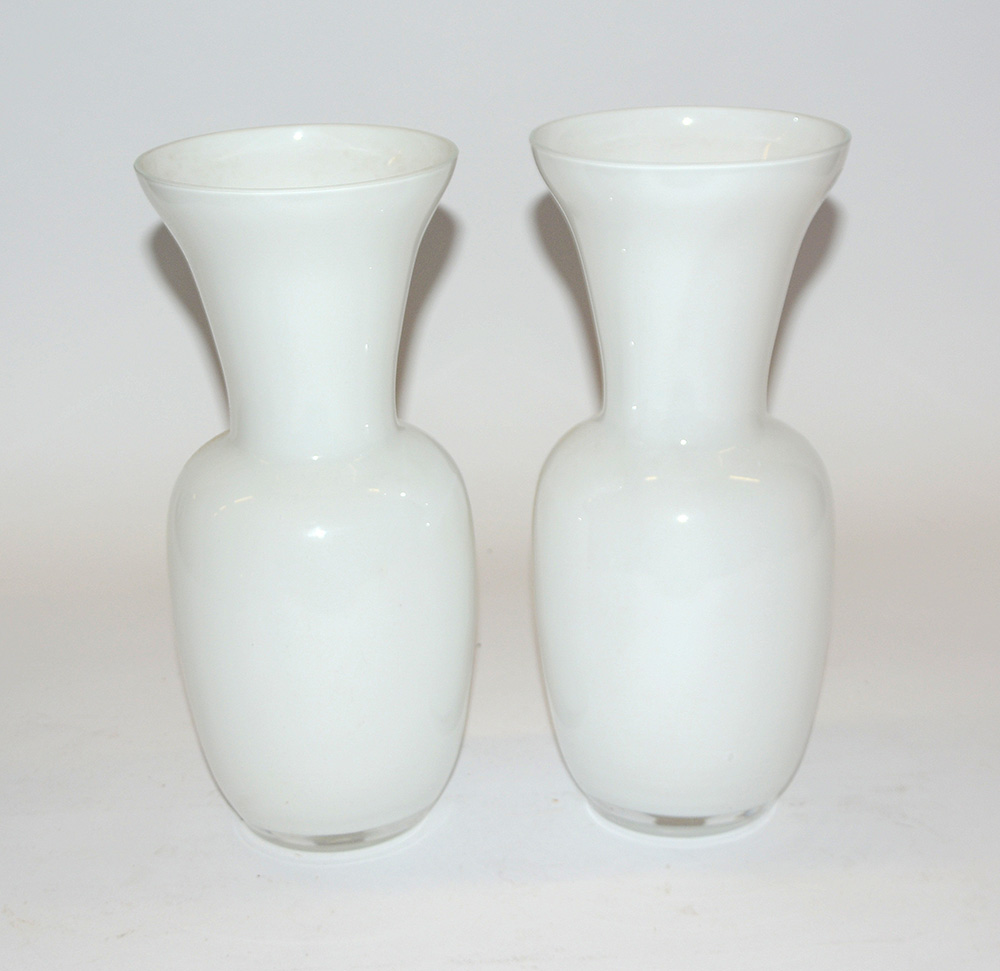 Lotto composto da due vasi a balaustro in vetro opacizzato bianco (h cm 30)