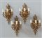 Gruppo di quattro aplliques a tre fiamme in bronzo dorato e cesellato a...