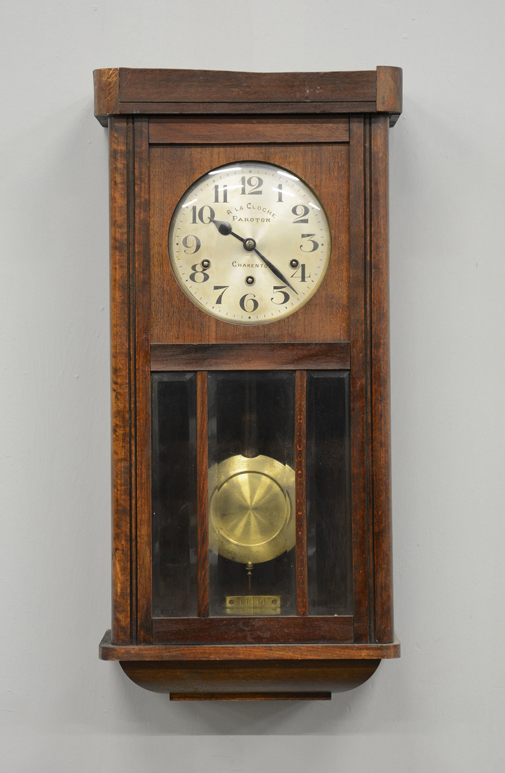 A LA CLOCHE PAROTON, CHARENTONPendola a muro con cassa in legno con carica...