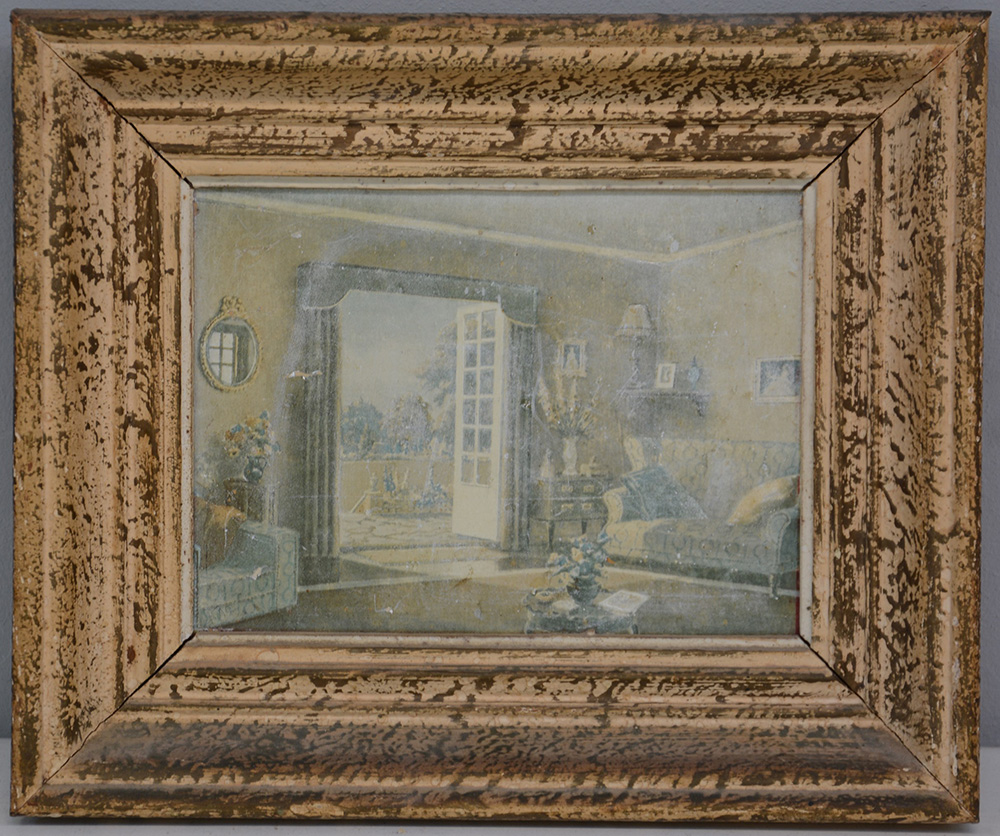 Cornicetta rettangolare in legno laccato (cm 25x28) contenente una riproduzione su rame (difetti)