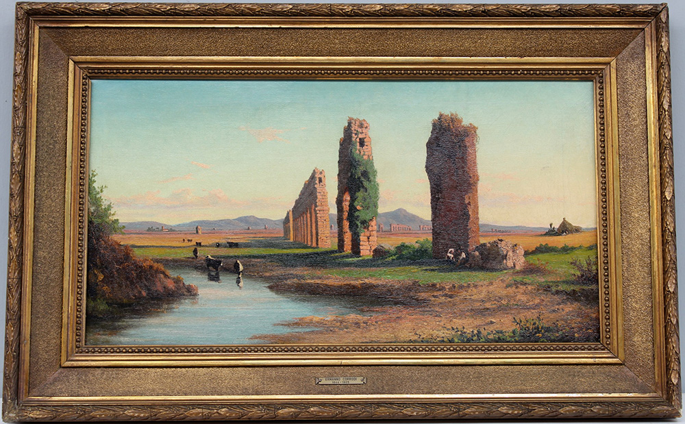 Lotto 2051 | "Veduta con l'acquedotto romano ed armenti" olio su tela (cm 37x65.5) In cornice