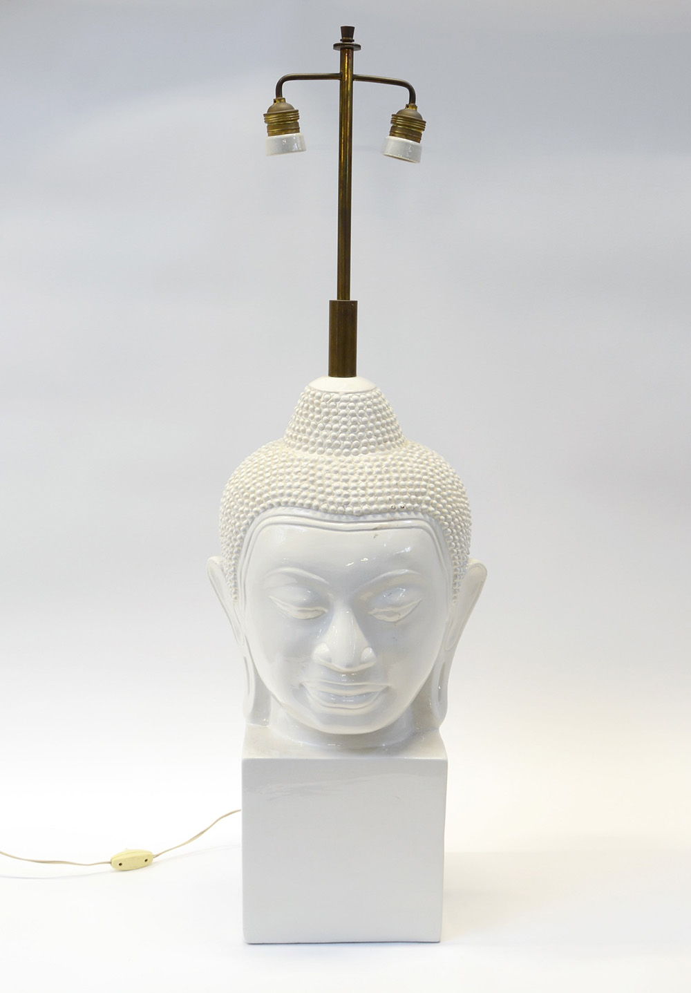 Lotto 2091 | Base per lampada in ceramica bianca raffigurante testa di Buddha (h cm 95)...