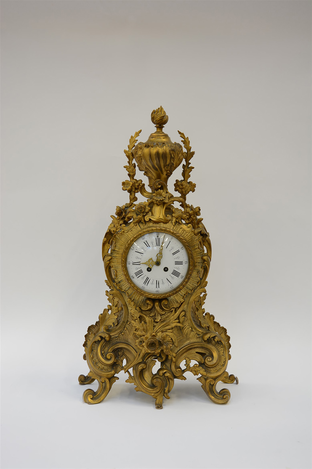 ANONIMO Pendola in bronzo dorato con motivo floreale, quadrante in smalto...