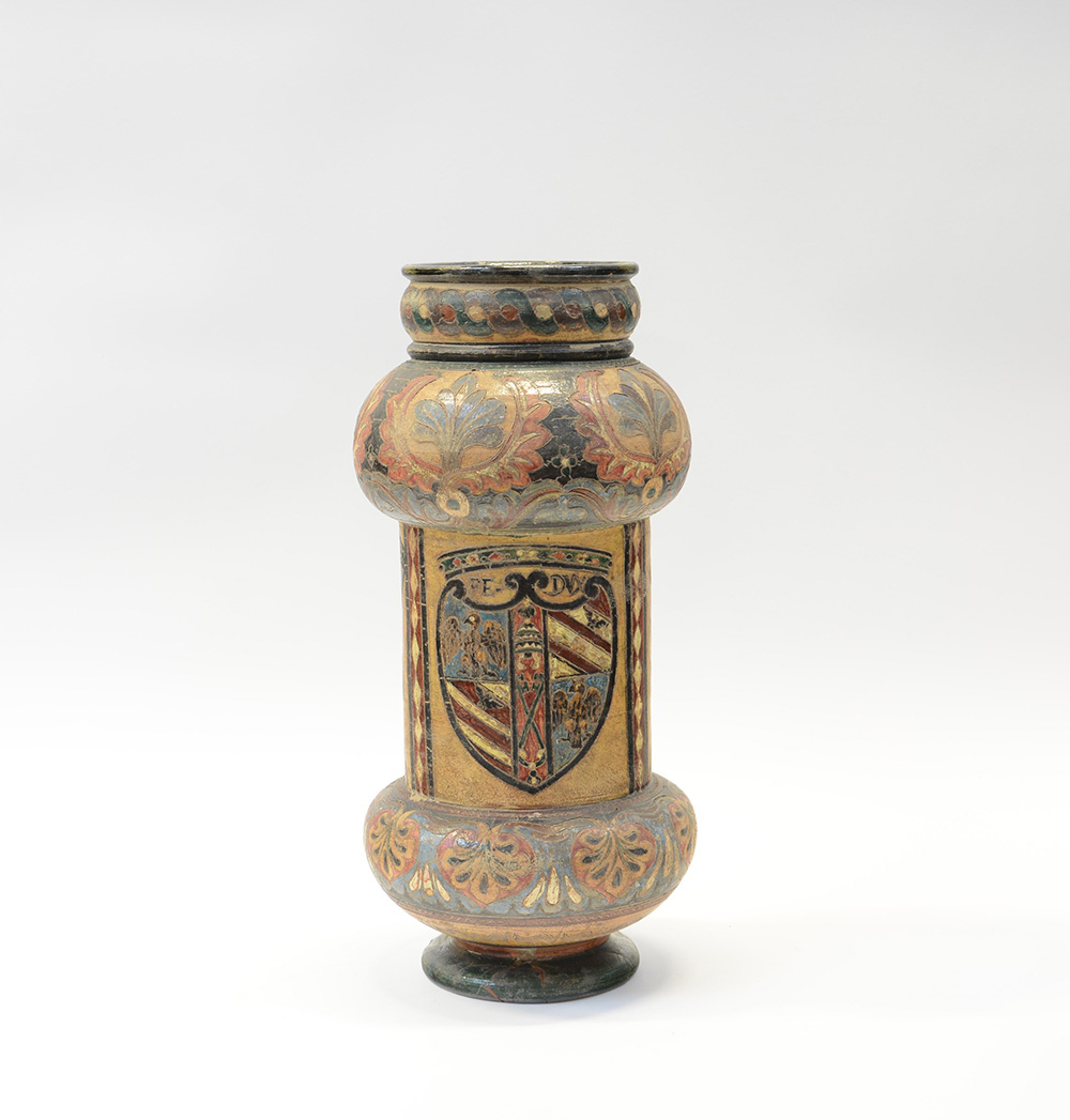 Portaombrelli in ceramica decorato a motivi rinascimentali marcato sotto la...