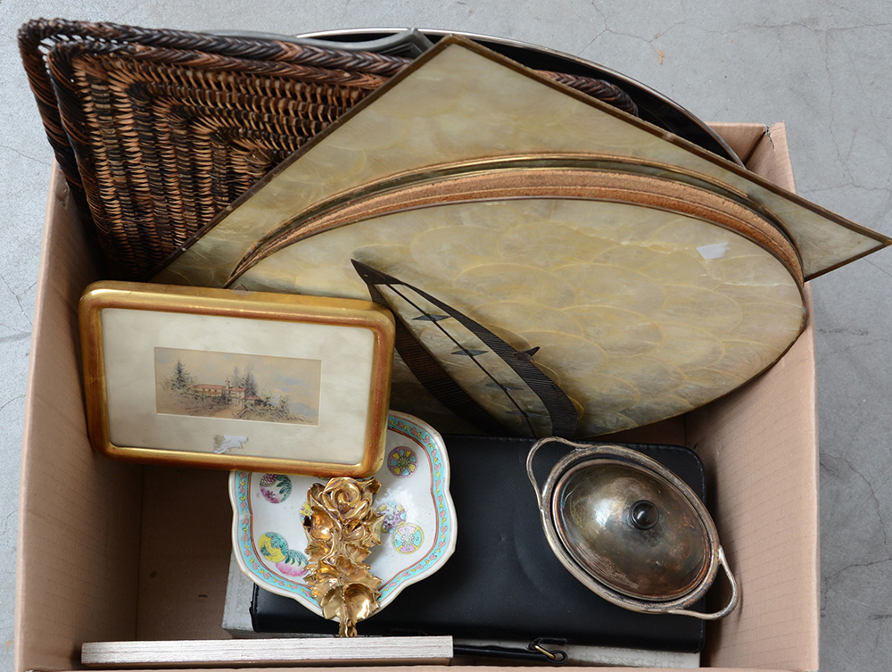 Cartone contenente numerosi oggetti per la tavola ed altri usi (difetti)