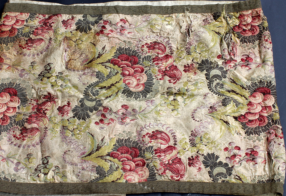 [Tappeti] Tessuto lampasso in seta e cotone broccato in argento, Europa, secolo XIX.