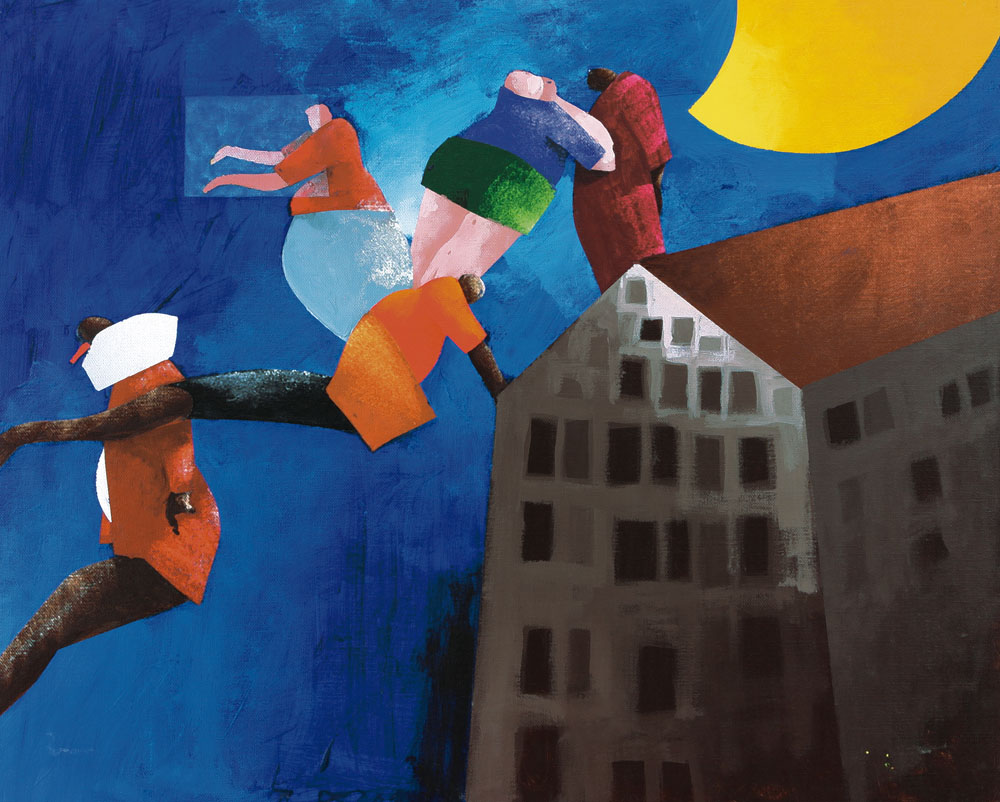 EMILIO TADINI Milano 1927 - Milano 24/09/2002 Fiaba acrilici su tela cm. 65x81, firma e titolo al retro, dichiarazione d'autenticità dell'artista su foto.