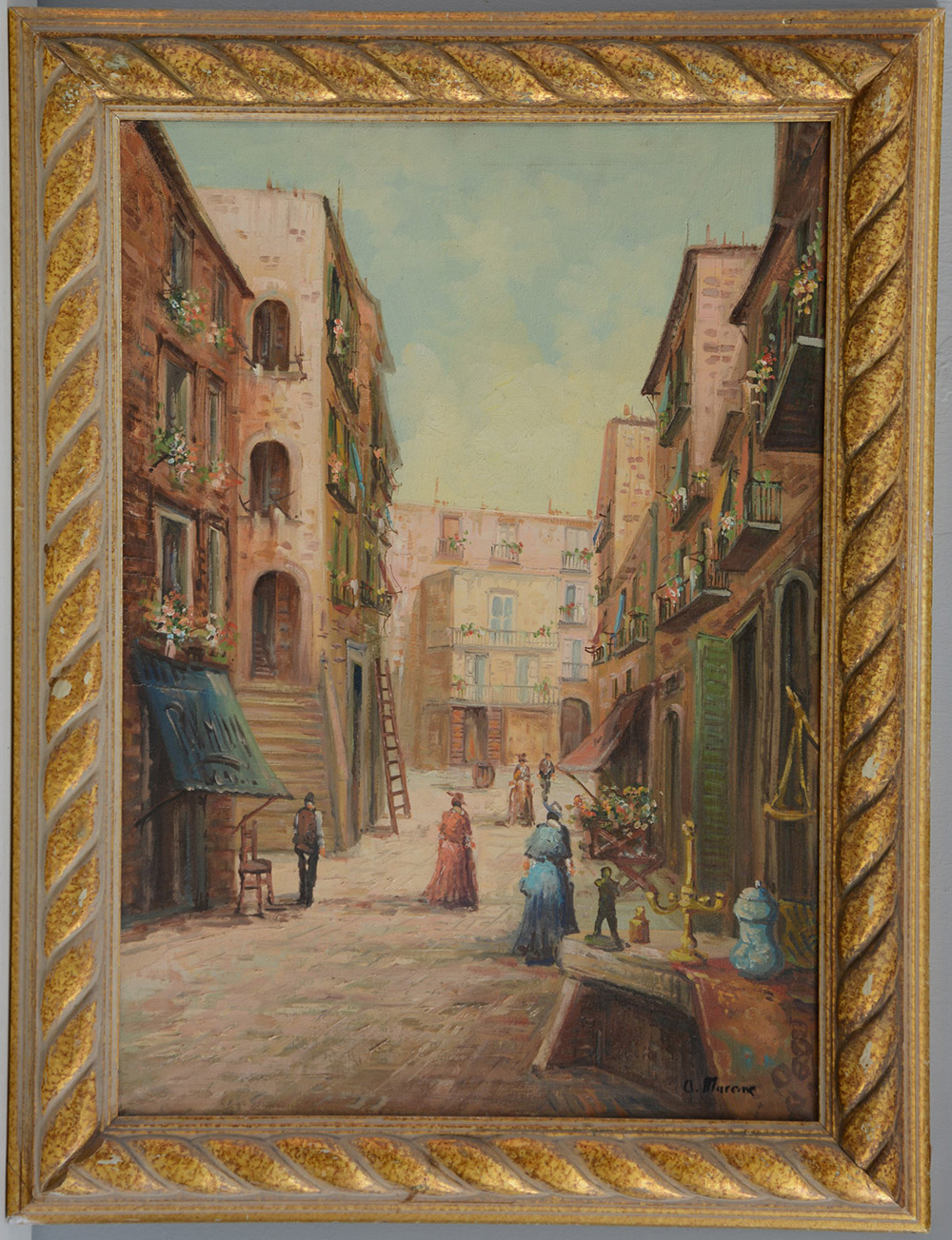 Marone A. "Scorcio di paese" olio su tela (cm 70x50) firmato in basso a...