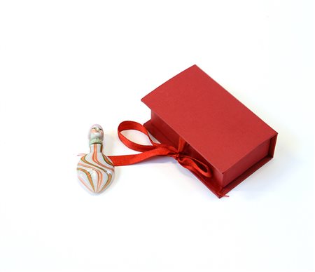Snuff Bottle in vetro e porcellana con presa a testa femminile, in custodia (h cm 6)