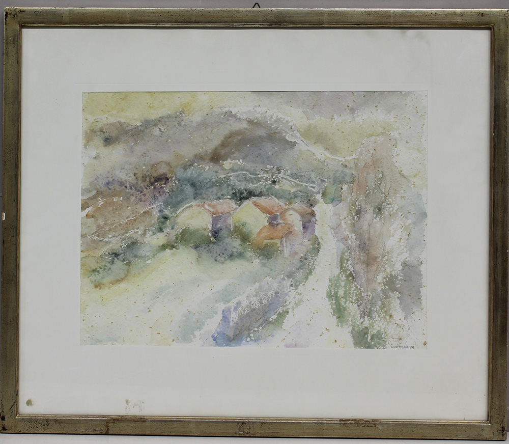 Lotto 2205 | Chiara Luraghi "Tetti rossi e il pioppo" acquarello su carta (cm 55x66)...