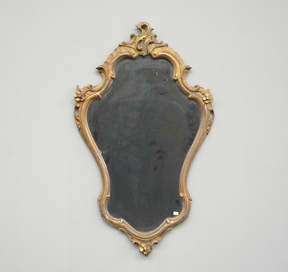 Specchiera di forma sagomata in legno intagliato e dorato (cm 89x60) (difetti)